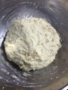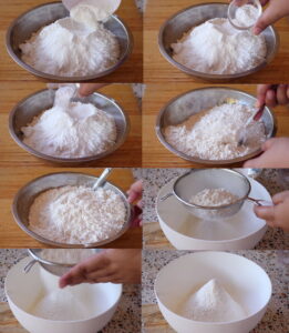 -ค่อยๆ เทน้ำที่เราผสมไว้ที่ละน้อยๆ แล้วนวดแป้งอย่ าให้จับเป็นก้อนเพราะมันจะทำให้เราใช้เวลานวด