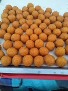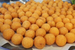ปั้นและนวดค ลึ งแต่ละชิ้ นให้เป็นก้อนกลม ๆ ขนาดพอดีคำ