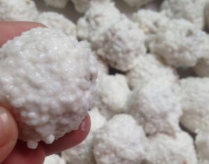 ไม่ต้องเล็กมากจนเกินไป ปั้นเป็นก้อนๆใส่ลงไปในถาดพักเอาไว้