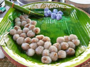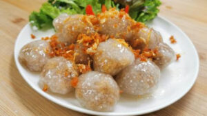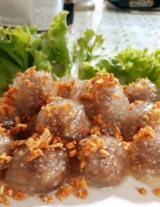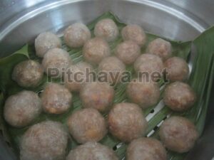 วางเรียงสาคูที่ปั้นเอาไว้ลงไปและทำการนึ่ งประมาณ 3-5 นาที ตัวแป้งเม็ดสาคูจะใสขึ้นเมื่อสุ ก แล้วให้นำออกมา