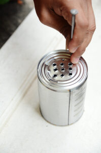 -แต่ก่อนอื่น เตรียมพิมพ์สำหรับกดตัวลอดช่องก่อน ดัดแปลงโดยใช้กระป๋องนมข้นจืด เ จ าะรูด้านล่าง
