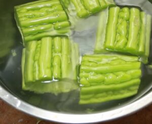 และก่อนที่จะนำมะระมาประกอบอาหารก็ให้ล้างมะระที่แช่น้ำเกลือออกด้วยน้ำสะอาดประมาณ 2-3 น้ำ