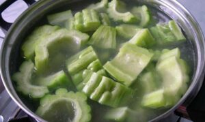 วิธีการต้ มน้ำหลายๆครั้งเหมาะตุ๋นหรือต้ม วิธีคือนำมะระไปต้มในน้ำเ ดื อ ด และเปลี่ยนน้ำหลายๆจนกว่าความขม