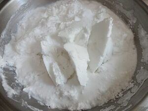 -เตรียมส่วนผสม กะทิ น้ำตาลทราย แป้งข้าวโพด เกลือ