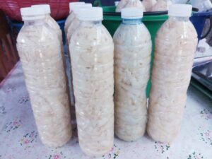 -ใส่หน่อไม้ลงขวดหรือภาชนะ เทน้ำเปล่าพอท่ ว ม ปิดฝาให้สนิท ทิ้งไว้ประมาณ 7 วันหรือจนเปรี้ยวตามชอบ