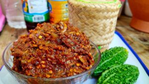 ให้เครื่องทุกอย่ างเข้ากันและให้ละเอียด แล้วค่อยใส่ห อ มแดงลงไปตำต่อเป็นอันสุดท้าย