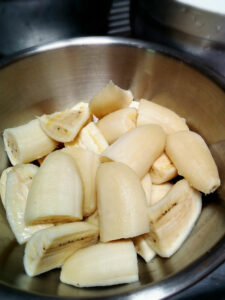 -ปอกกล้วยและล้างเ ยื่ อ กล้วยในน้ำเกลือเพื่อไม่ให้กล้วยดำ
