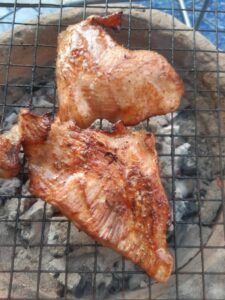-ขั้นตอนย่ างหมูนี้แหละสำคัญครับคือใช้ไ ฟถ่ านอ่อนถึงกลางครับ ต้องคอยดูอยู่ตลอดไม่งั้นดำครับ ไม่น่ากินแน่นอน