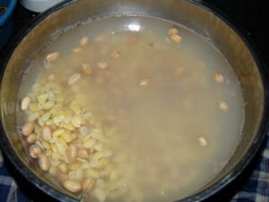 -ล้ า งถั่วเหลืองให้สะอาด เอาเม็ดดำ เม็ดเ สี ยและเป ลื อ ก ออกให้หมด แช่ทิ้ งไว้ 3 ชั่วโมง เมื่อครบเวลา