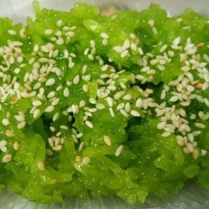 -หลังจากที่ข้าวเหนียวเย็นตัวลง เราก็มาตัดข้าวเหนียวออกเป็นชิ้ นๆตามที่ต้องการ จากนั้นโรยด้วยง าขาวคั่ ว
