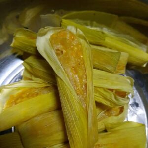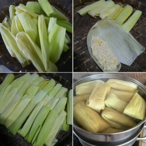 -จากนั้น นำมาห่อด้วยเป ลื อ กข้าวโ พ ด หากไม่มี จะใช่ใบตอง หรือถ้วย ก็ได้ค่ะ ส่วนตัวอย ากให้ใช้เ ป ลื อ กข้าวโพด