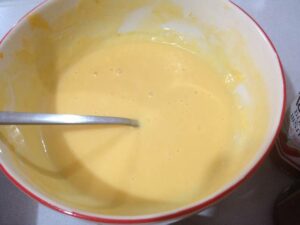 -ใส่น้ำผึ้งลงไป 1 – 2 ช้อน จากนั้นตีให้เข้ากัน