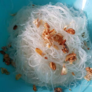 -นำวุ้นเส้นแช่น้ำ จากนั้นล ว กพอสุ ก คลุกเคล้าด้วยกระเที ย มเจี ย วที่เตรียมไว้เล็กน้อย