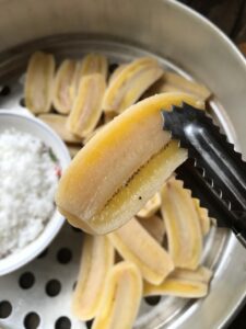 -ต้มประมาณ 5 นาทีค่ะ สังเกตุว่า เปลือกกล้วยจะปริๆ เป็นอันว่า ใช้ได้ค่ะ