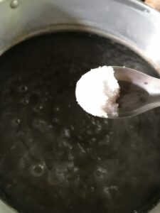-พอน้ำเ ดื อ ด ใส่เกลือลงไปครึ่งช้อนโต๊ะ