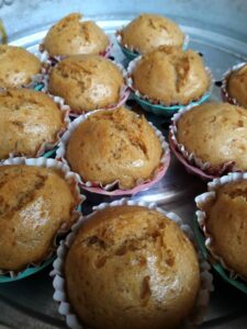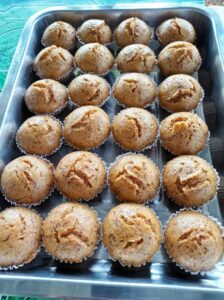 -หยอดขนมใส่ลงไปในแม่พิ ม พ์ ใส่ไม่ต้องเต็มพิ ม พ์ เหลือพื้นที่เผื่อไว้ตอนขึ้นฟู