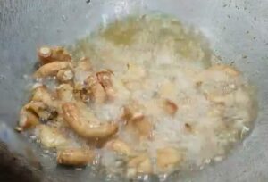 -ตั้งน้ำมั น ให้ร้ อ น นำไ ส้ อ่อนที่ผสมแป้งแล้ว ลงทอด ต้องคอยคนด้วยนะคะ กระเที ย มที่สุ กก่อนตักขึ้นเลยค่ะ