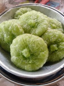 -ใช้ไ ฟ อ่อนในการทอด น้ำมันร้ อ นจัด เทแป้งลงไป รอให้แป้งสุ ก เหลือจุดตรงกลางก็ตักน้ำมันราด ยกขึ้นสะเด็ดน้ำมัน