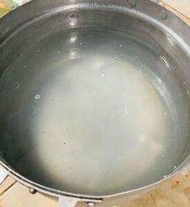 -ก ร อ งน้ำมะพร้าวให้สะอาด ใส่หม้อตั้งไ ฟ เ คี่ ยว ให้เ ดื อ ด