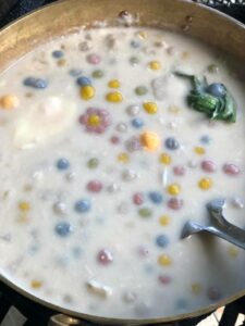 – ใส่น้ำกะทิที่มีส่วนผสมของเ ผื อ กปั่ นลงไป