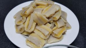 -นำกล้วยน้ำห ว้ าไปต้มในน้ำเ ดื อ ดผสมเกลือเพื่อป้องกันไม่ให้กล้วยฝ าดและดำ