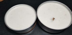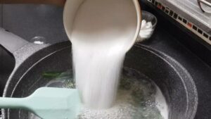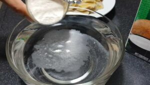 -นำผงวุ้นลงผสมในน้ำเปล่า แช่ทิ้งไว้ 10-15 นาที เพื่อให้ผงวุ้นอิ่มตั ว