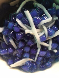 -นำแป้งที่ได้ไปปั้นย า วๆแล้วเอาหั่ น เล็กๆ จากนั้นนำไปต้ ม ในน้ำเดื อ ด พอแป้งลอยขึ้นแสดงว่า สุ กแล้ว
