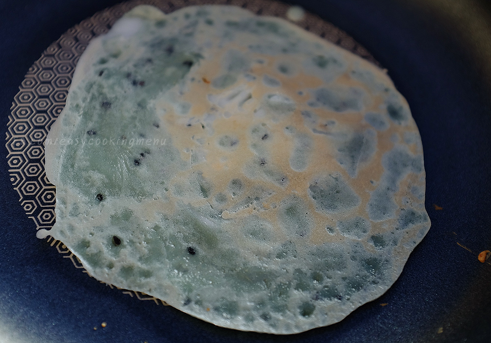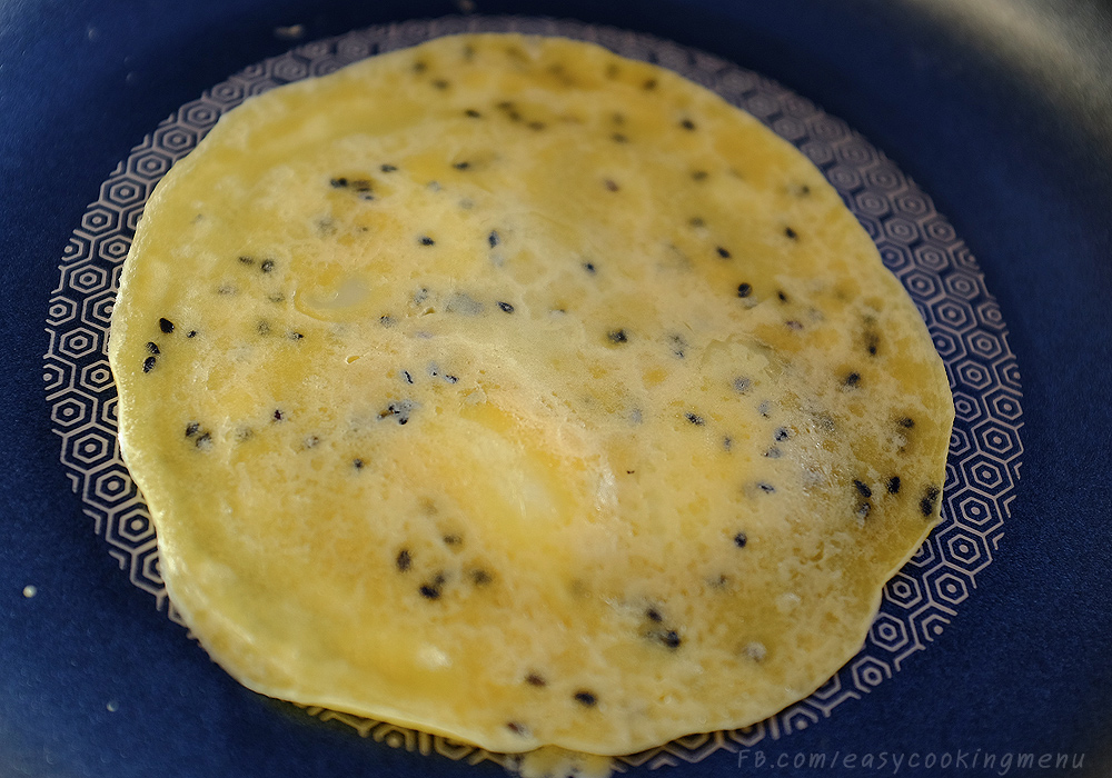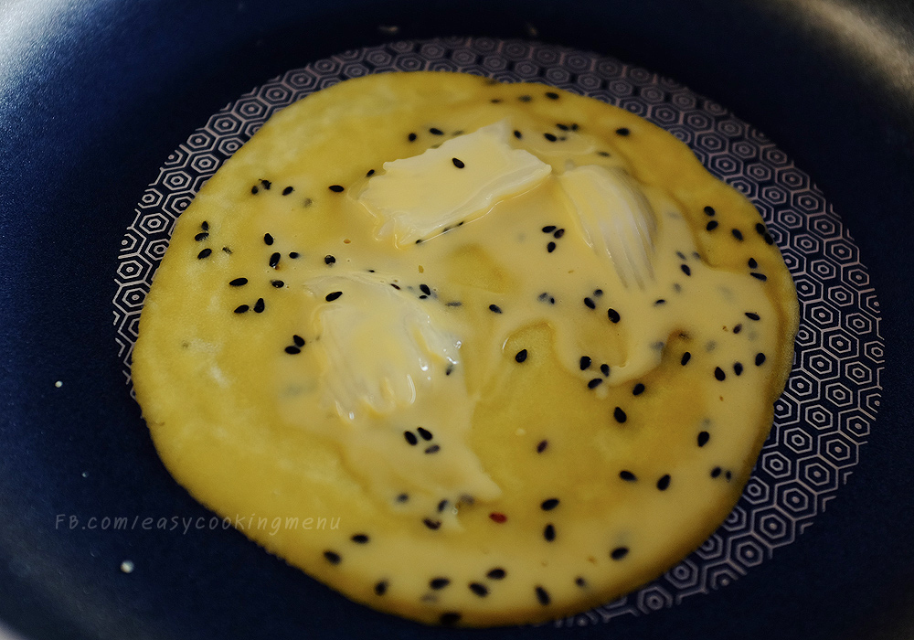 1.ตั้งกะทะเทฟลอนคู่ใจ เปิดไ ฟอ่อนดวงเล็กตรงกลางเลยค่ะให้พอร้ อ นนิดๆ หยอดแป้งลงไป