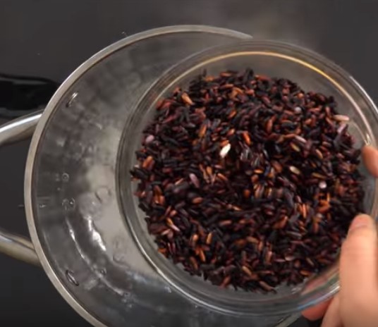 1.ข้าวเหนียวดำ 200 กรัม (ซาวข้าวเหนียวดำให้สะอาดสัก 2 รอบ แช่น้ำ 1 คืน)