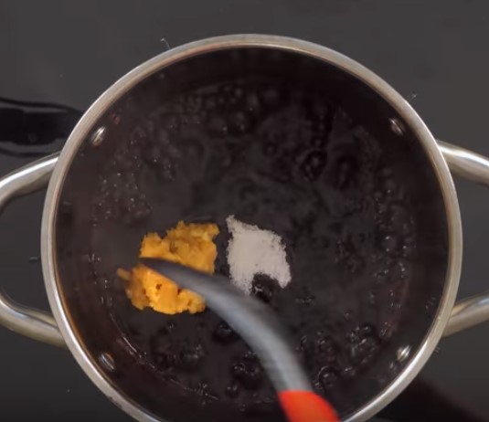 ถ้าน้ำงวดลงก็เติมน้ำเพิ่มทีละน้อยๆ ประมาณ 30 นาที หมั่นคนอยู่เรื่อยๆ ไม่ให้ติดก้นหม้อ