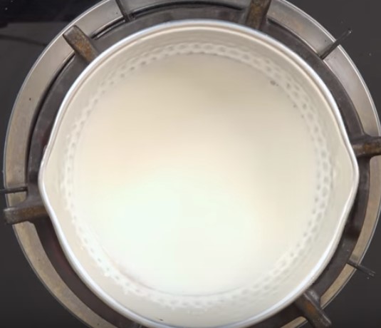 3.เตรียมน้ำกะทิ ผสมเกลือ และแป้งข้าวจ้าว ลงไปคนผสมให้เข้ากัน ยกขึ้นตั้งไ ฟให้เ ดื อ ด เ คี่ ยวพอกะทิเริ่มข้น