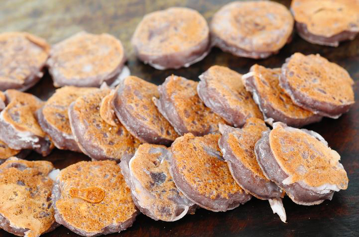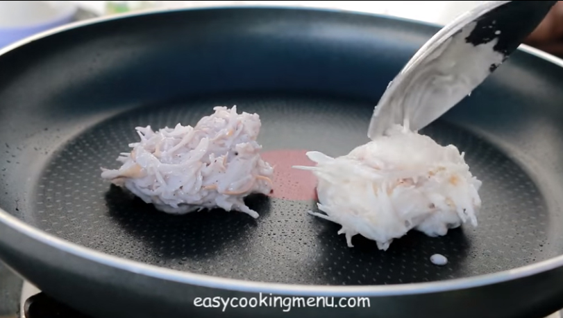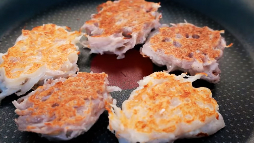 4.กลับด้านไปมาจนขนมสุ ก เป็นสีเหลืองออกน้ำตาลทั้ง 2 ด้าน ก็เป็นอันใช้ได้