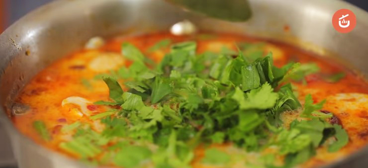 5.ใส่ผักชีและผักชีฝรั่ง คนให้เข้ากันอีกครั้ง ชิมรส
