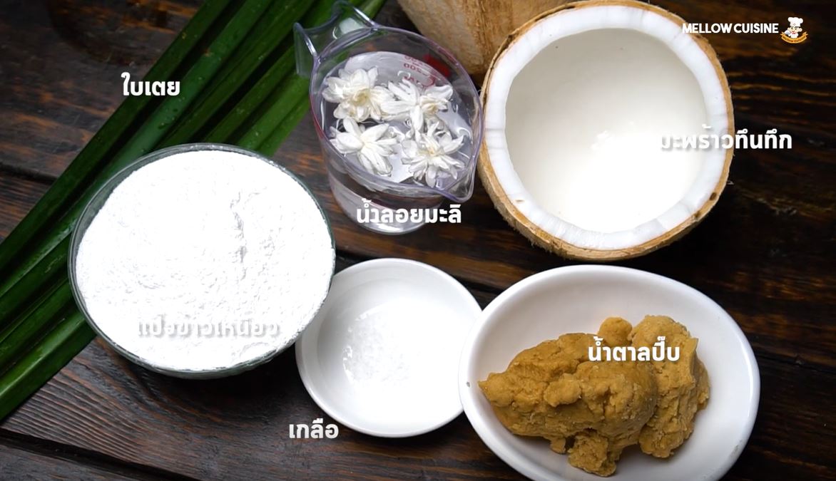 1. น้ำตาลมะพร้าว หรือน้ำตาลปี๊บ 200 กรัม