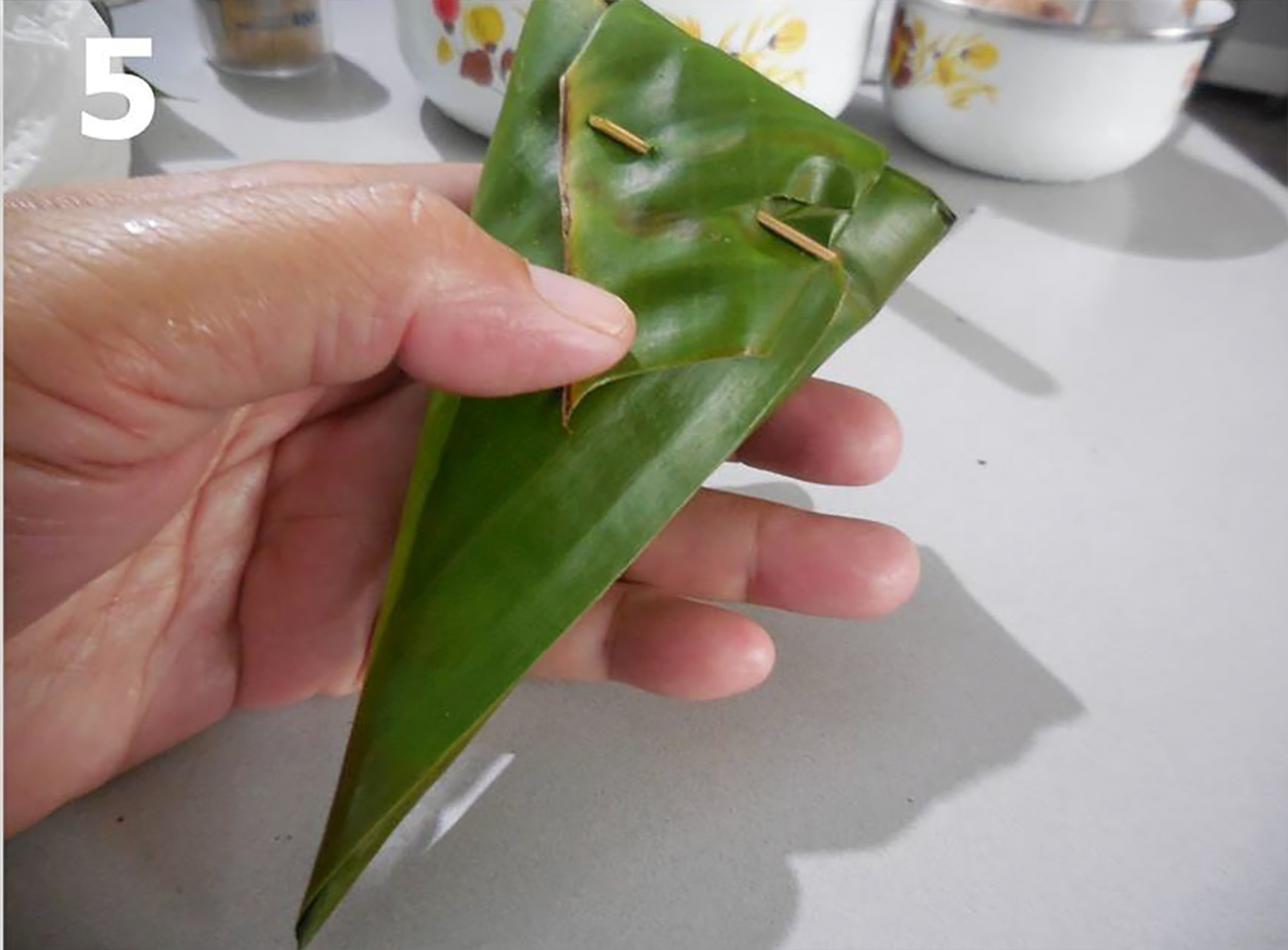 5.กลัดด้วยไม้กลัด ตัดแต่งใบตองให้เรียบร้อย
