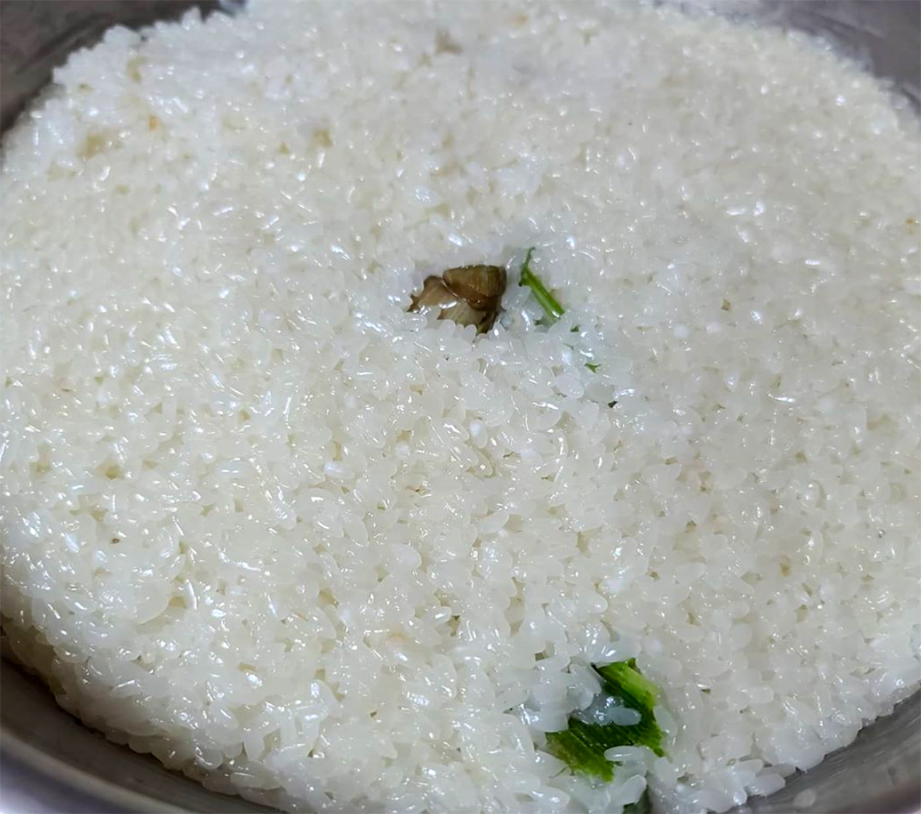 2. นำกะทิ น้ำตาล และเกลือ ผสมให้กัน จากนั้นเทราด ข้าวเหนียว ที่นึ่งสุ ก