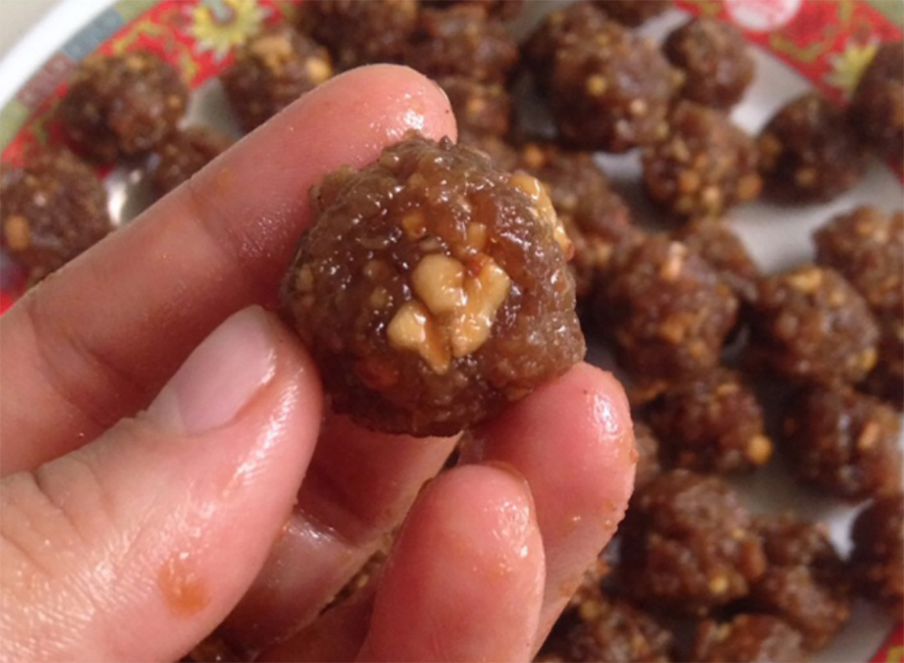 7.พักไ ส้ให้เย็นแล้วนำมาปั้นเป็นก้อนๆ พักไว้