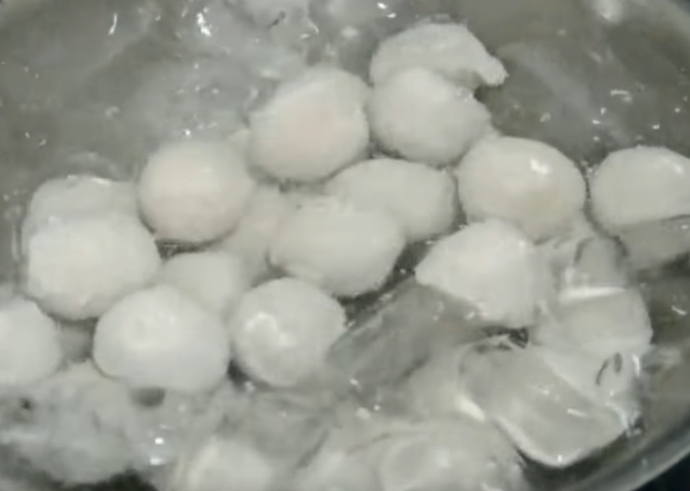 6.แช่ในน้ำเย็น 4 – 5 นาที ก็นำกระช อ นมาช้อนลูกชิ้ นไปพักให้สะเด็ดน้ำค่ะ จากนั้นพร้อมนำไปรับประทานค่ะ