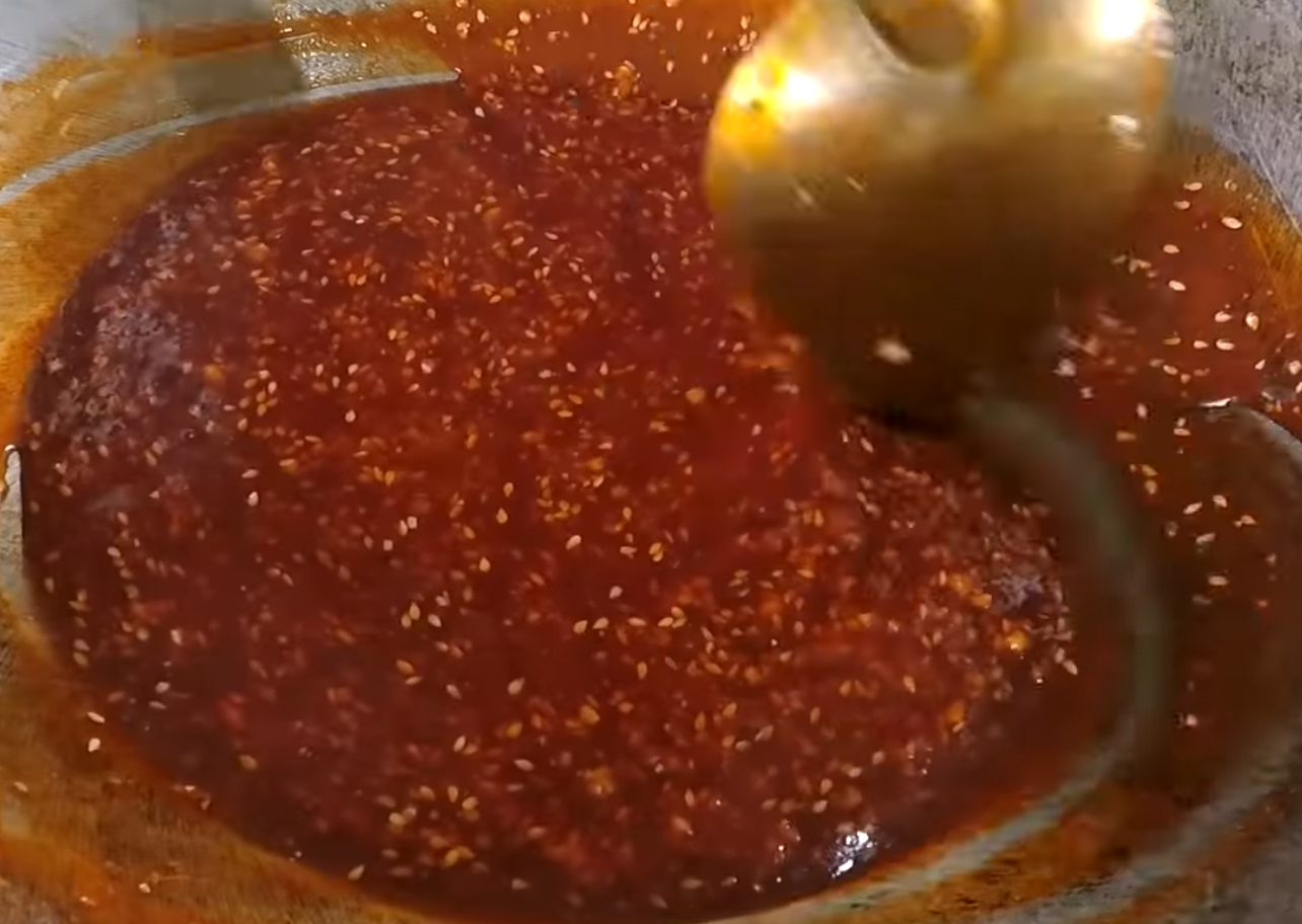 เติมซีอิ๊วดำ และถั่วกับง าที่ปั่นไว้ลงไป