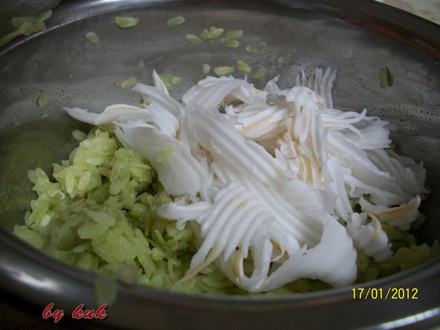 3. ระหว่างรอ เราก็ ขู ดมะพร้าวอ่อน เตรียมไว้