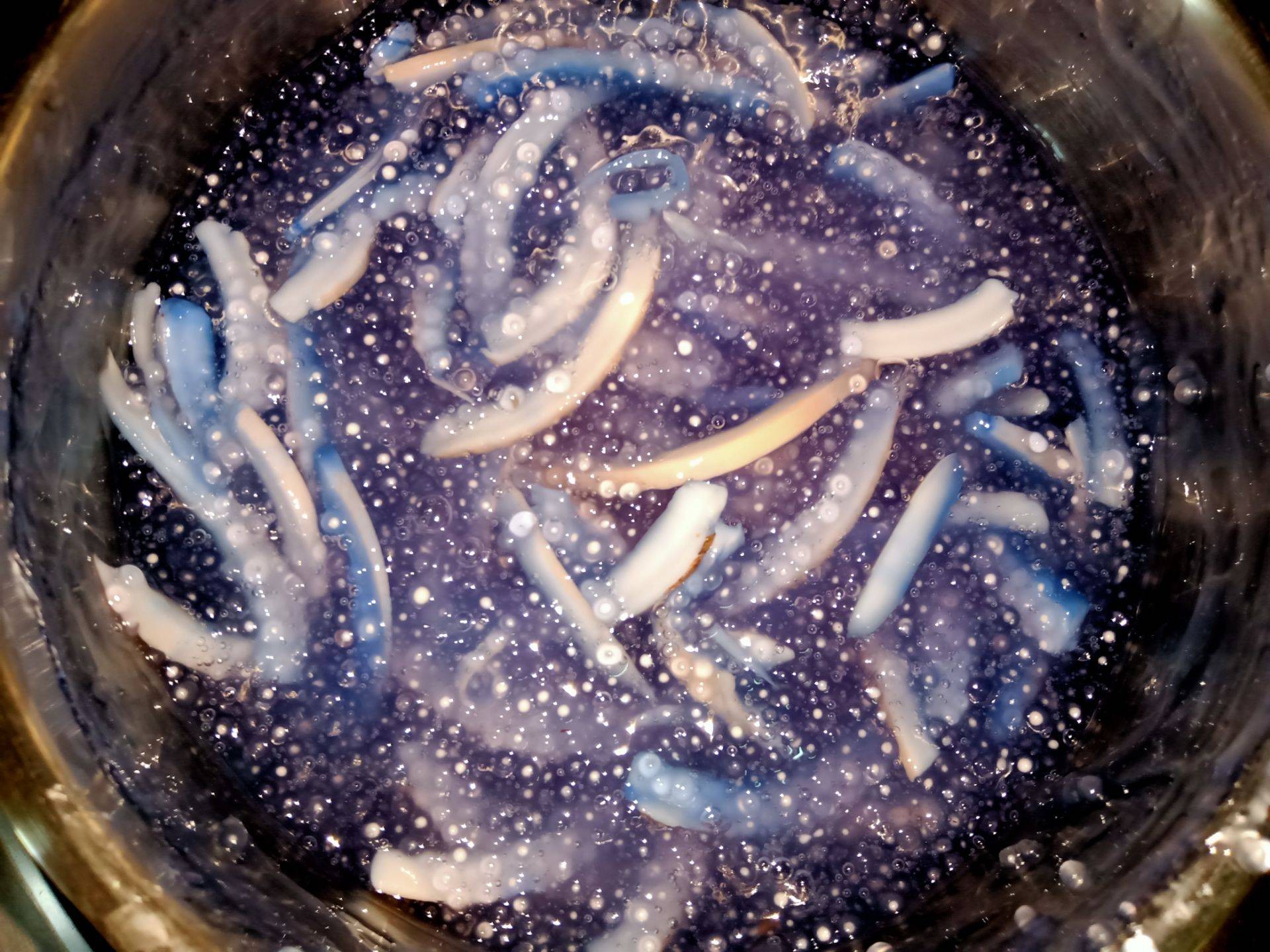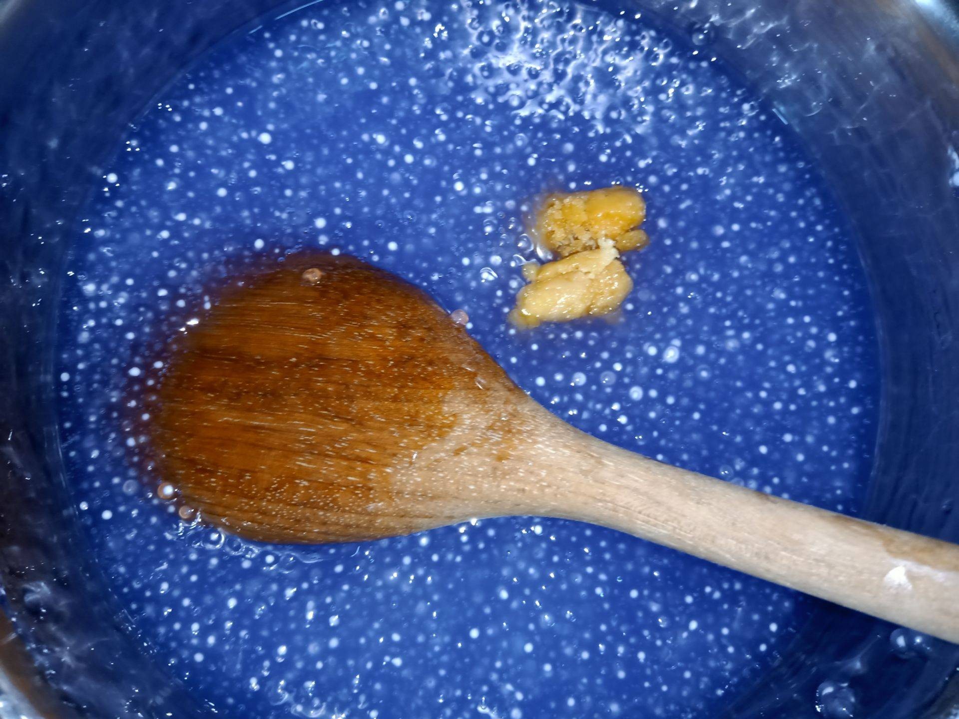 1. ให้นำด อ กอั ญชันไปต้มกับน้ำ 1 ถ้วยตวง เมื่อเ ดื อ ดจนน้ำเป็นสีน้ำเงินเข้ม ให้กรองเอาแต่น้ำ