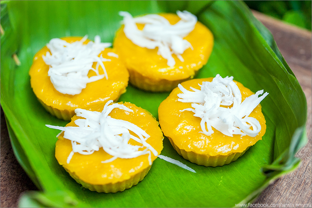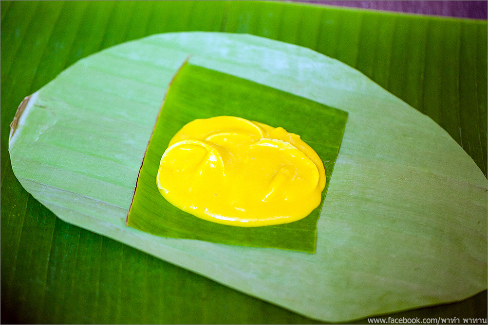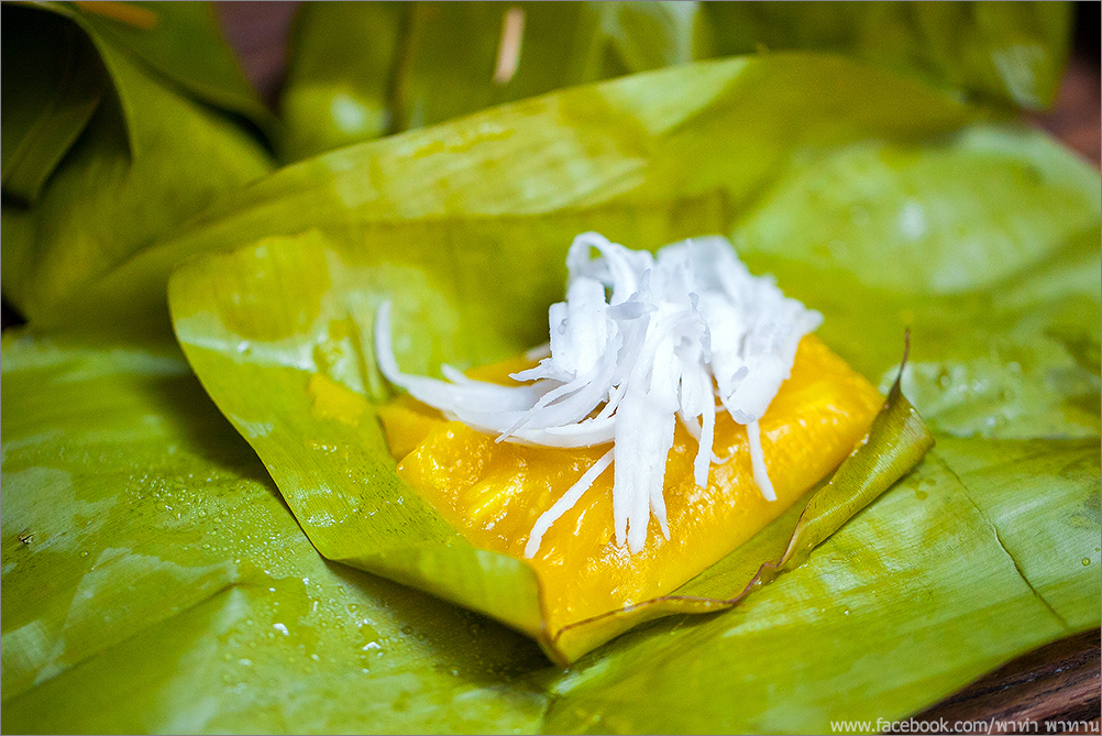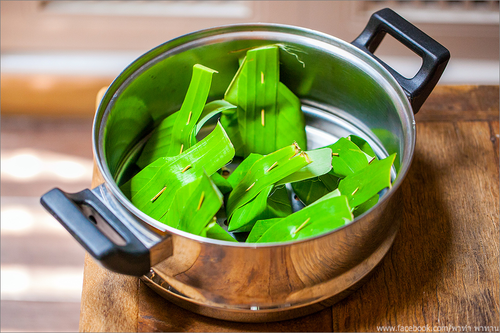 -เมื่อเสร็จแล้วนำไปห่อใบตองหรือใส่ถ้วย และนำไปนึ่งประมาณ 15 นาที