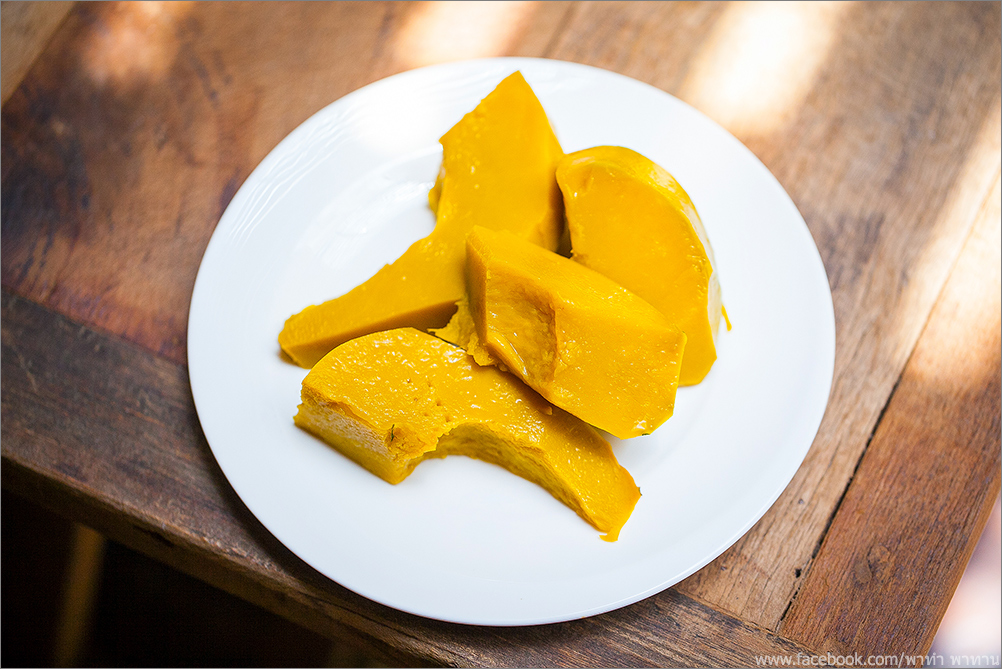 เ นื้ อฟั กทองที่นึ่งแล้ว