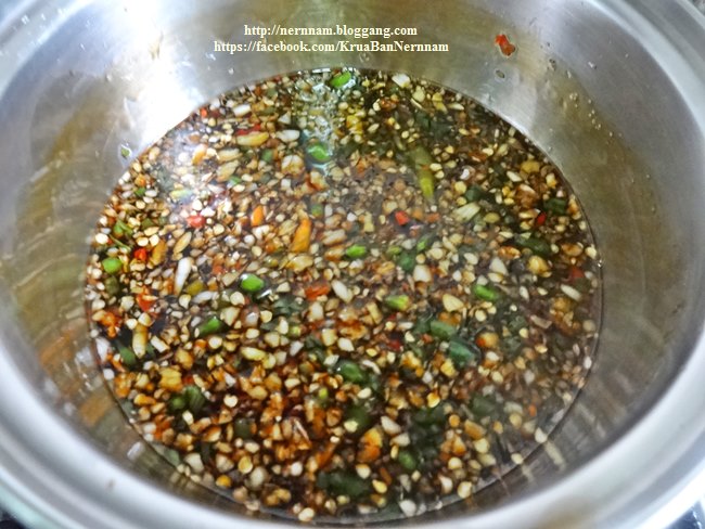 พักไว้พออุ่น ใส่พริกขี้หนูและกระเทียม