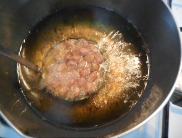 5. ตักขึ้นพักให้สะเด็ดน้ำมัน รอจนขนมเย็นลง เก็บใส่ภาชนะมีฝาปิดสนิท เพื่อให้กรอบนานๆ