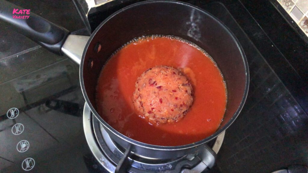 2.ใส่น้ำแกงส้มลงในหม้อ ตั้งไ ฟปานกลาง และนำเ นื้ อป ล าที่ตำไว้ใส่ลงไปคลุกในน้ำแกง