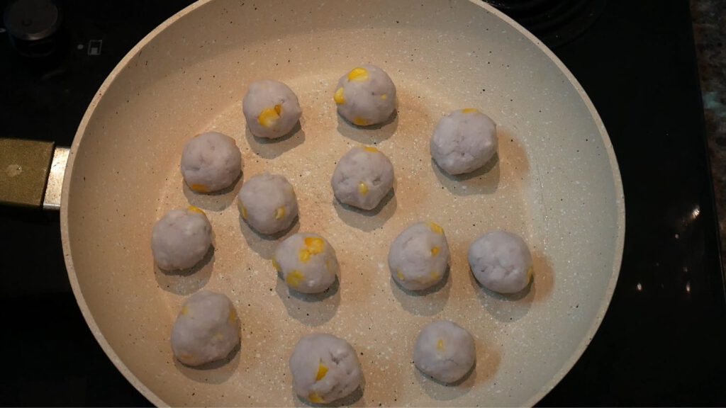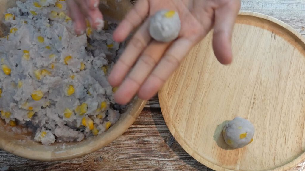7. นำมาปั้นเป็นลูกกลมๆนามต้องการ
