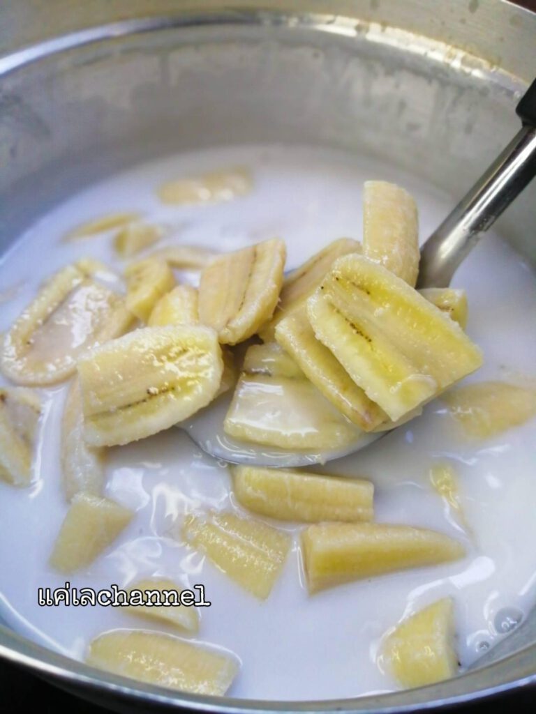 5.หลังจากนั้นใส่กล้วยลงไป ต้มต่อให้เ ดื อ ด