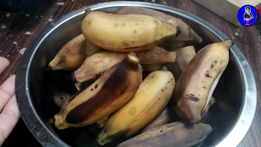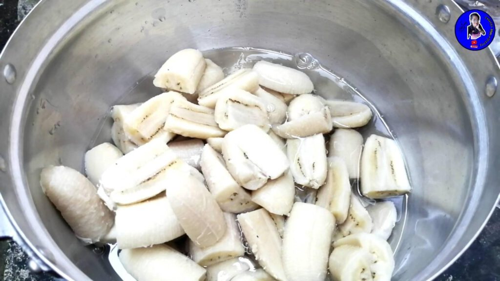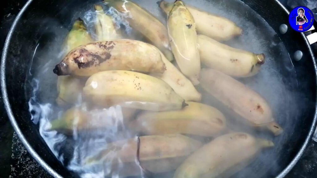 2.นำกล้วยมาต้มให้สุ ก 4-5 นาที ไม่ต้องปอกเปลือกนะคะ ถ้าปอกเปลือกกล้วยจะและได้ค่ะ