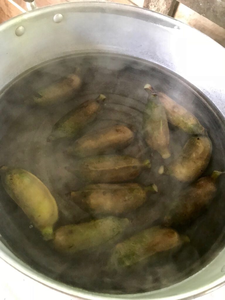 3.ต้มประมาณ 5 นาทีค่ะ สังเกตุว่า เปลือกกล้วยจะปริๆ เป็นอันว่า ใช้ได้ค่ะ